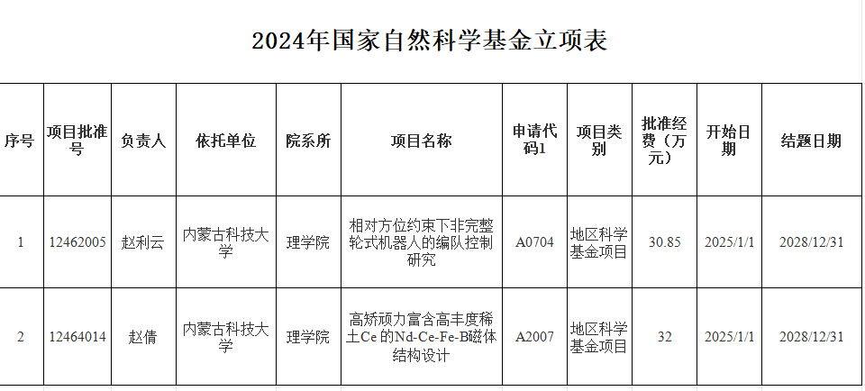 2024年国家自然科学基金立项表