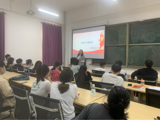 会议开始由支部书记左珊珊向积极分子介绍了二支部的概况、积极分子培养的目标、程序、联系人、相关活动等,并要求广大青年要牢记初心使命,端正入党动机,不断检省自己,时刻谨记党的要求、党员的标准,要以良好的精神面貌迎接党的二十大召开。