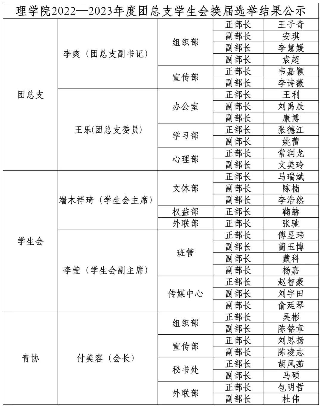 根据304永利集团员工干部改选工作方案的有关规定和要求,本着“公平、公正、公开”原则,经本人申请、组织审核、公开竞聘、综合考察和集体讨论,现决定下列同学拟任公司团总支、员工会、青年志愿者协会主要员工干部,名单公示如下: