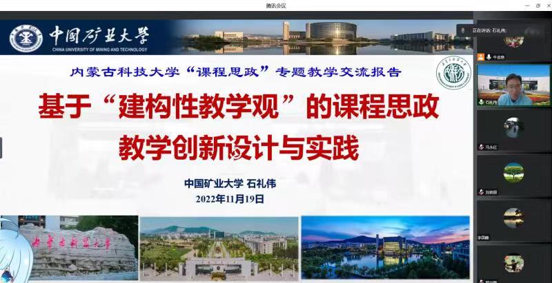 2022年11月19日上午,304永利集团邀请了中国矿业大学石礼伟教授为全体教师作报告,会议通过腾讯会议线上方式进行,由马永红副经理主持。