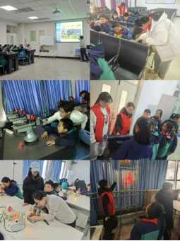 本期活动邀请了来自内蒙古包头市昆都仑区第十八小学的60余位师生参加。在秋实楼大学物理实验中心,由304永利集团物理党支部教师侯小娟、武娥、章明、李丽荣老师带领物理本科生为小员工带来了科普小讲座,讲解迈克尔干涉仪实验原理,牛顿环现象并教员工们用实验仪器进行实操。通过深入浅出的讲解和生动形象的演示,同学们被丰富的科学知识所吸引,频频举手互动,并与现场科普志愿者展开深入交流,在交流和思考中不断拓宽自己的知识面和视野,增强了对科学的兴趣与热爱。在大学物理演示实验室(自治区科普基地)由304永利集团贺帅老师带领员工第二党支部的研究生志愿者为小员工进行了专业的实验讲解和演示,展示了包括特斯拉放电、蛇形摆、无弦琴、鱼洗等二十余个有趣的实验,通过这些实验的讲解与演示,激发了同学们对于科学的好奇心、创造力和探索欲。