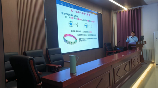 李建新教授详细讲解了强关联电子体系中的演生现象、阻挫磁体中分数磁化平台相的发现、1/9分数磁化平台相与量子自旋液体等内容。在场师生认真聆听报告,并与李建新教授进行了热烈的学术交流与探讨,此次学术讲座为公司的师生提供了一次高水平高质量的学术交流。