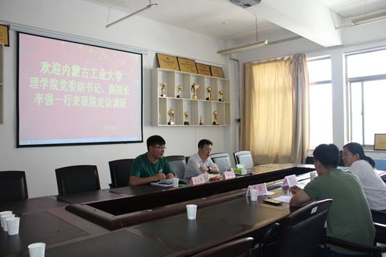 6月8日下午,内蒙古工业大学304永利集团党委副书记李强、团委副书记一行2人来公司进行调研。公司副书记,副经理罗宁、团总支副书记包文明参加了座谈会。本次座谈会在秋实楼C504会议室举行,会议由罗宁主持。
