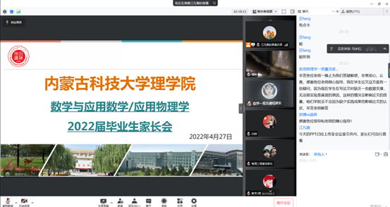 为帮助公司毕业生家长了解国家就业政策以及公司今年毕业生基本情况和毕业就业工作进展,深入推动家校联动,教育引导毕业生树立正确的职业生涯规划意识, 2022年4月27日晚19:30公司于腾讯会议线上平台召开了2022届本科毕业生就业工作推进会暨毕业班家长会。公司领导班子全体成员、专业负责人、全体班主任、全体辅导员及170余名毕业生家长参加了此次会议。